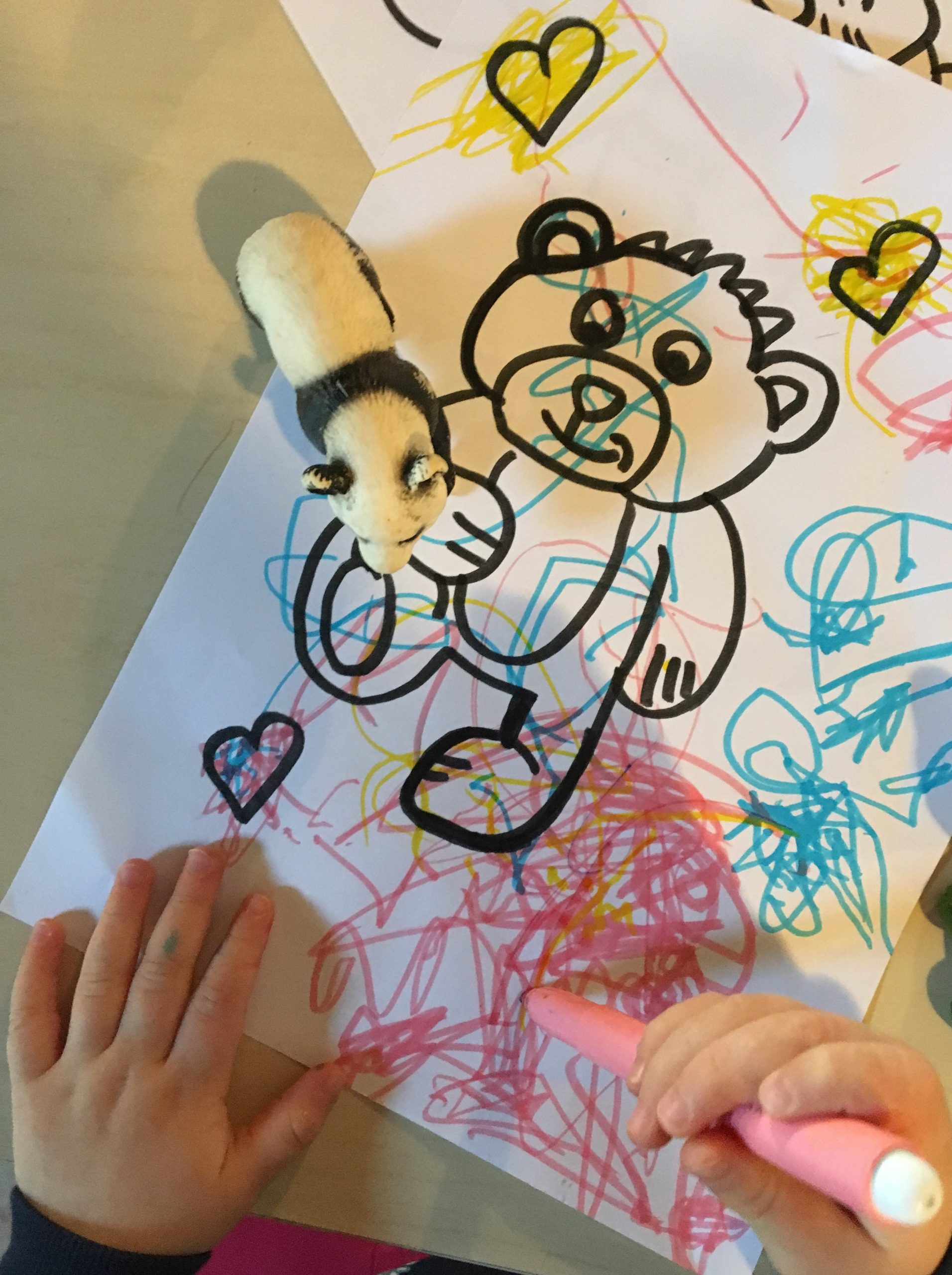 Scegliamo dalla scatola l’animale che più che preferiamo e coloriamo l’immagine disegnata dall’educatrice, con i pennarelli