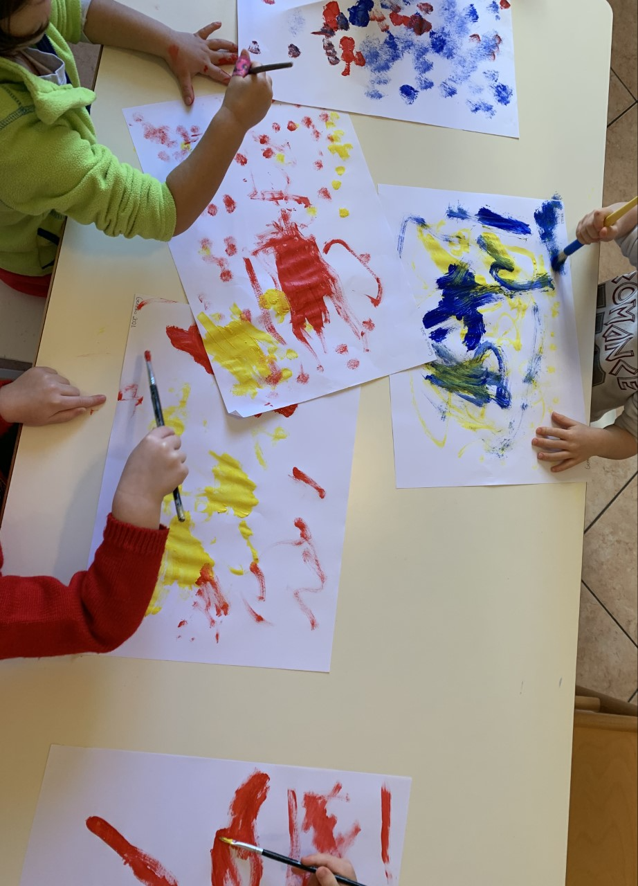 Ricordiamo le regoline dei nuovi angoli di gioco e facciamo un disegno libero con le tempere.
