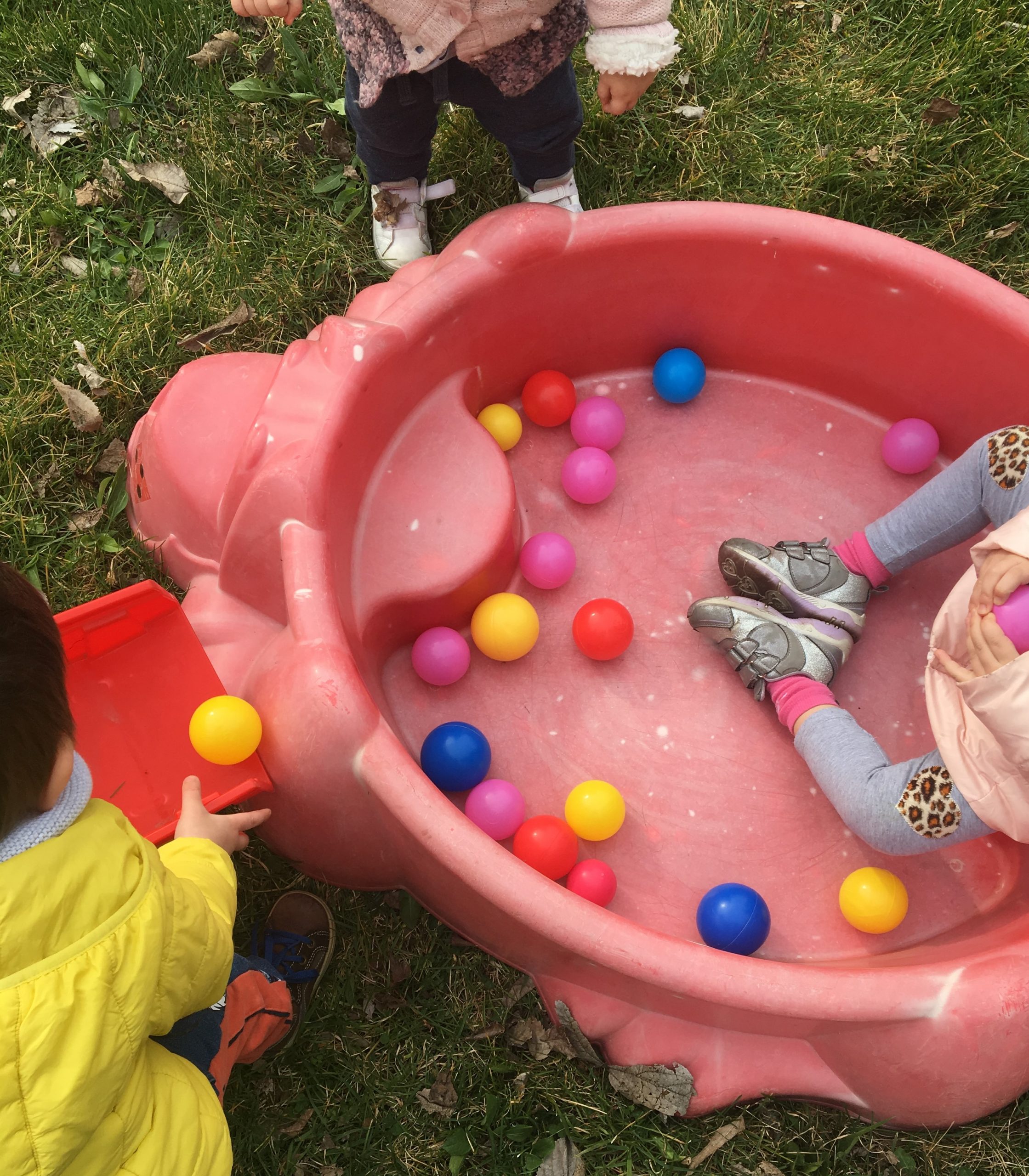 Giochiamo all’aria aperta: la nostra tartaruga si riempie di palline colorate e noi ci divertiamo a lanciarle!