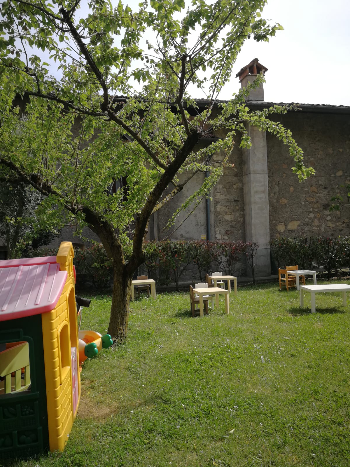 Tutto il gruppo: uscita in giardino. Sistemiamo i nuovi giochi e li puliamo con canna dell’acqua e spugne.