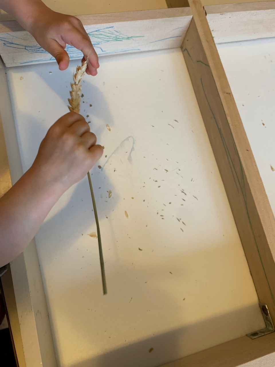 attività manipolativa: conosciamo e manipoliamo spighe di grano che diventano farina