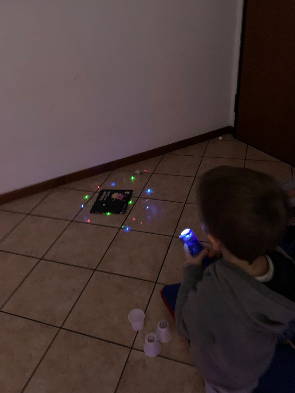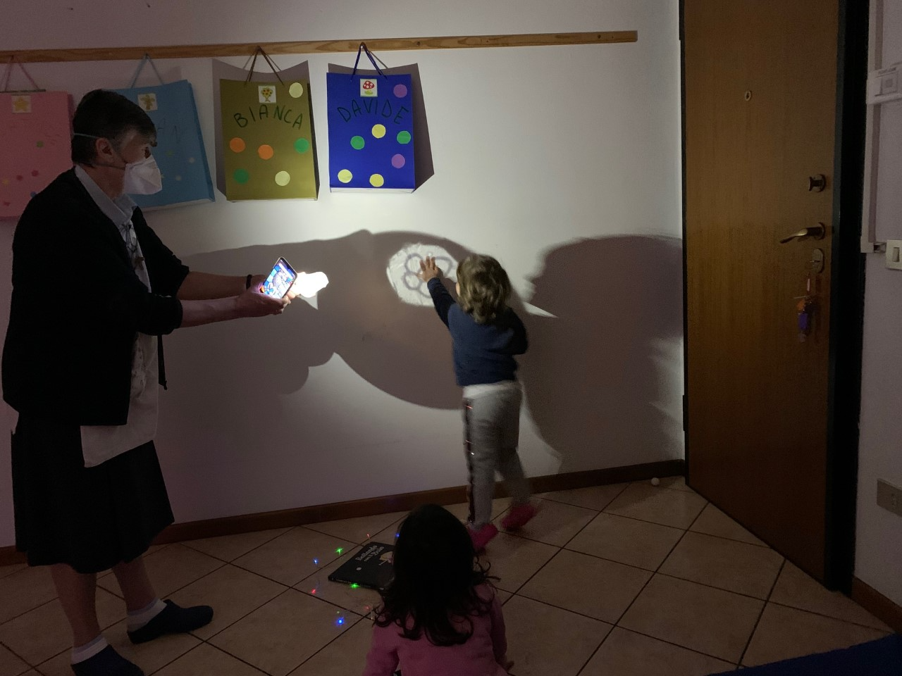 Tutto il gruppo- leggiamo il libro “Ballando con il buio”( Ella Burfoot ) e poi giochiamo con luce, buio, torce, lucine e ombre.