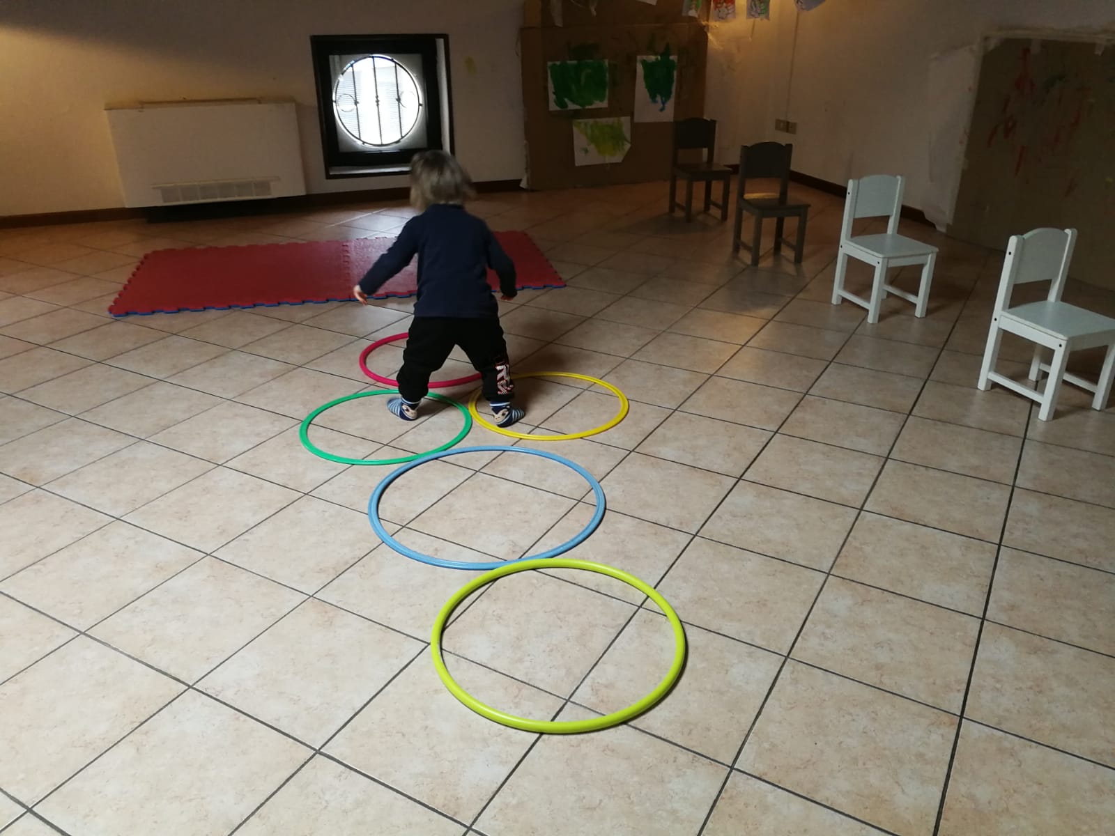 Tartarughine m. – motricità: impariamo il concetto di dentro e fuori attraverso gioco dei cerchi e tunnel
