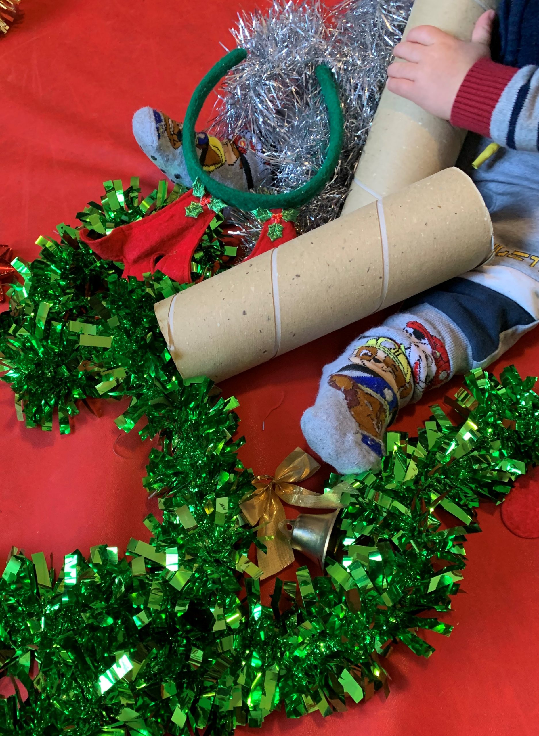 (Gruppo piccoli)- Giochiamo con festoni natalizi, palline e campanelli. Scopriamo colori e consistenze differenti.