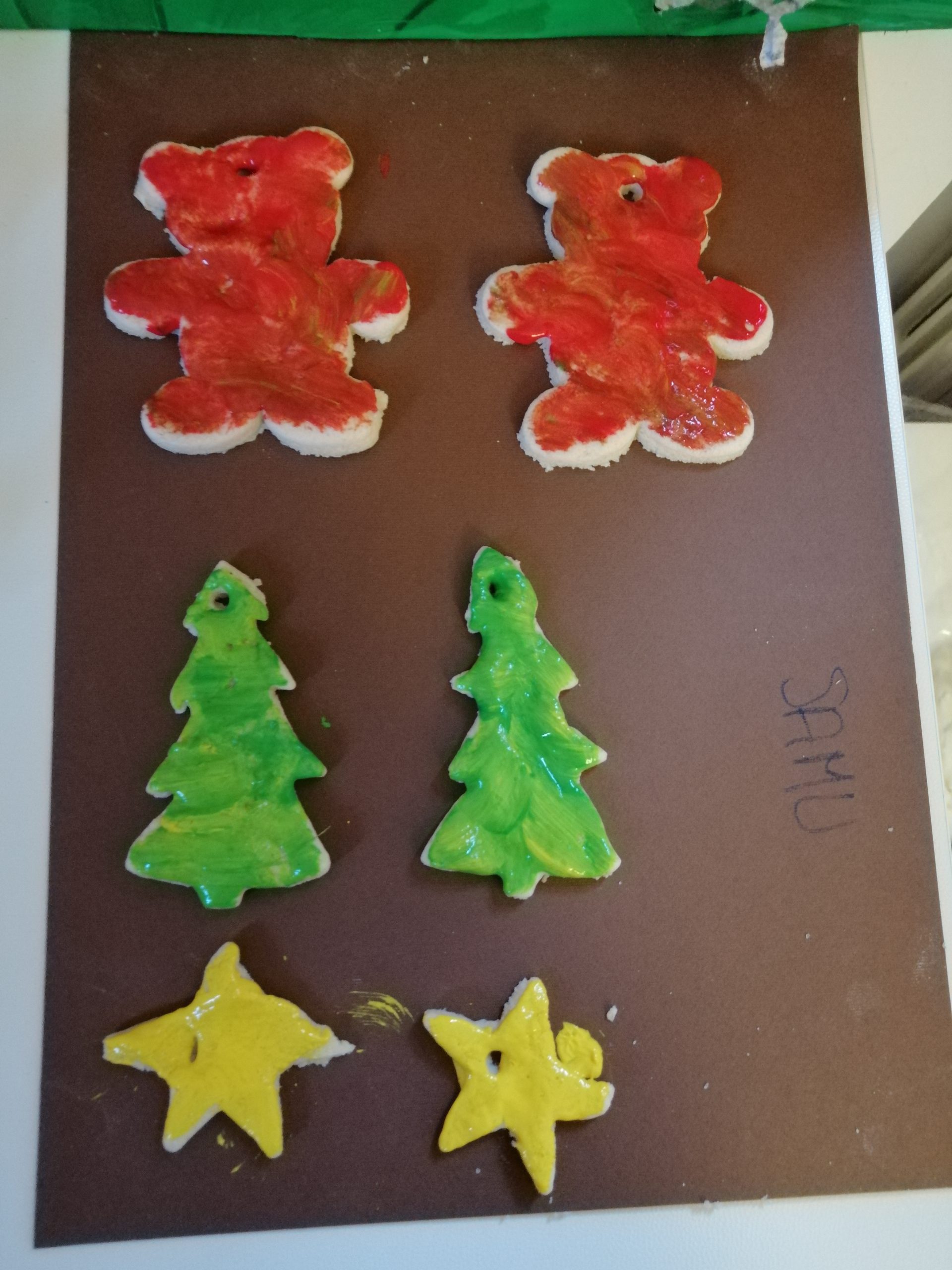Insieme alle nostre mamme, nonne e maestre abbiamo creato molte cose: dalle decorazioni di pasta di sale per addobbare il nostro albero, i biglietti natalizi con il tappo di sughero, agli alberi di natale tridimensionale, ai barattoli di vetro per fare le candele della speranza natalizia, al babbo natale con la barba di cotone e il presepe.