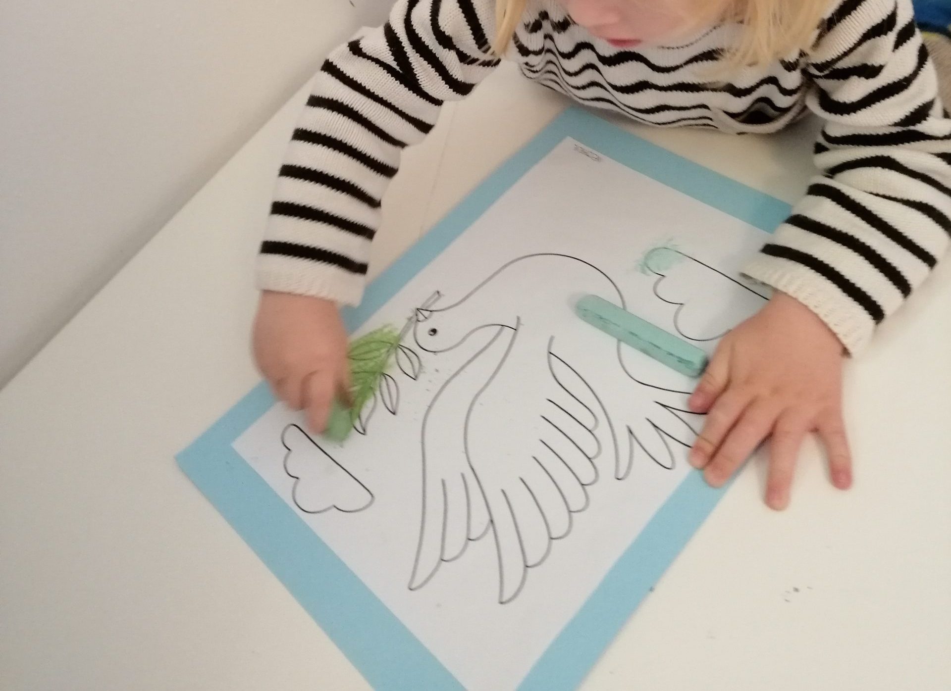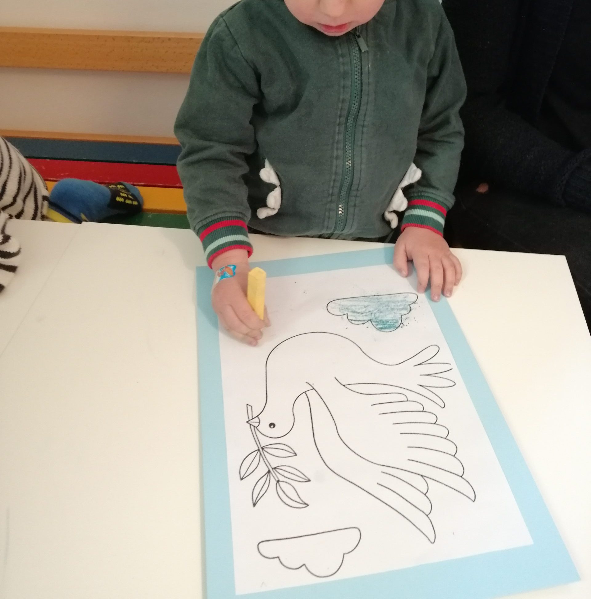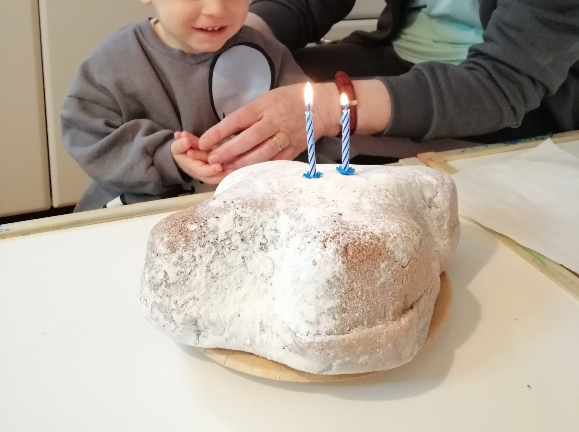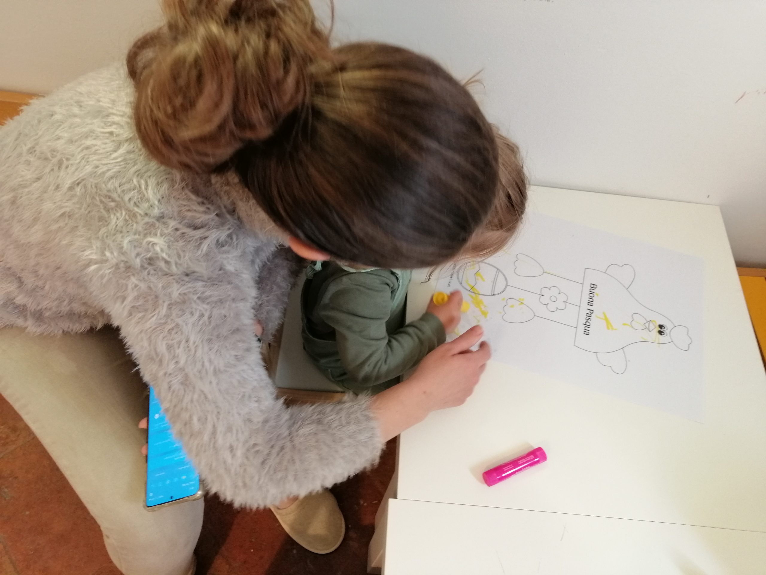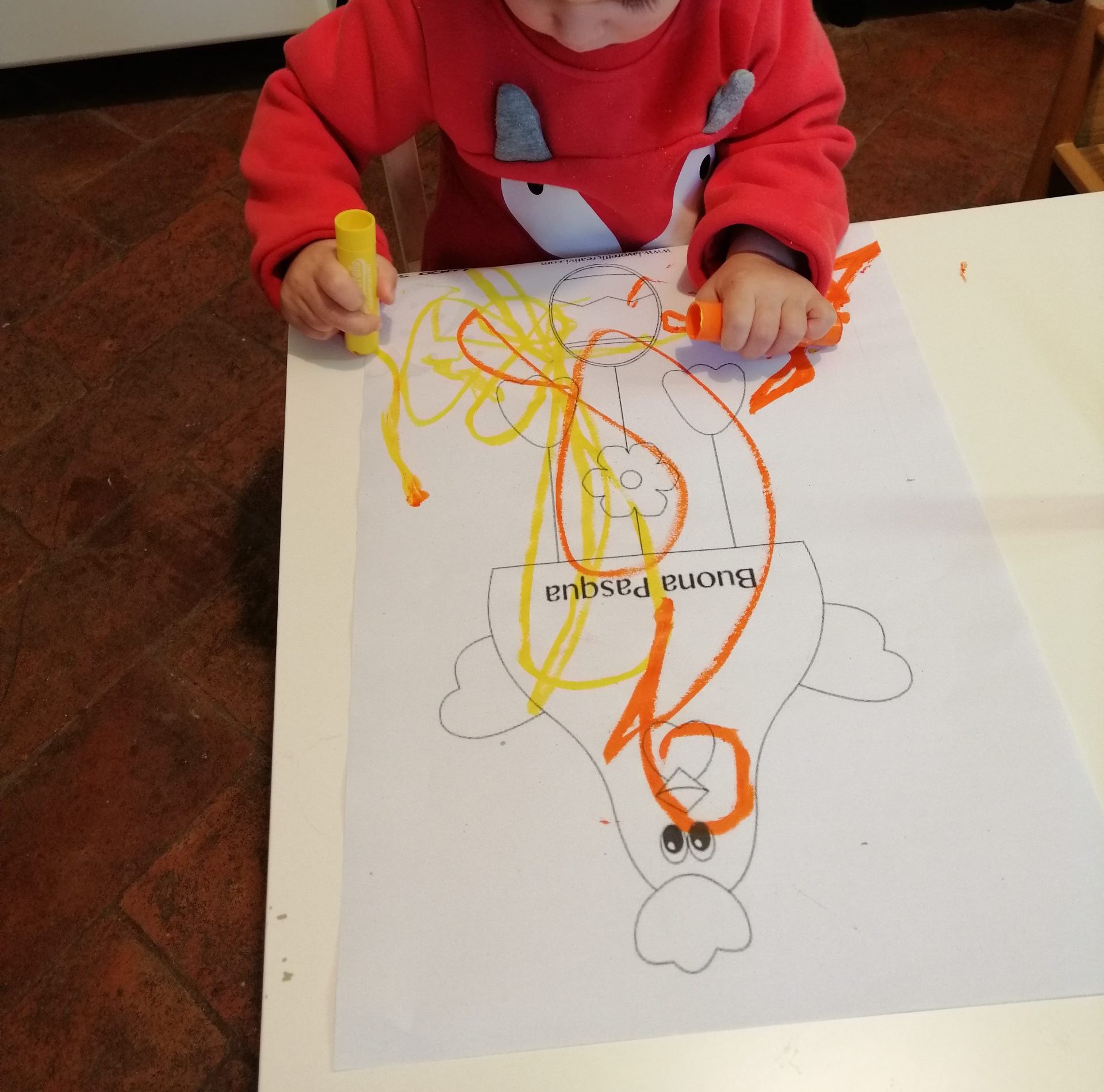 e infine per salutarci e farci gli auguri, abbiamo festeggiato il compleanno del nostro amico Mattia che ha compiuto due anni, abbiamo assaggiato la colomba e abbiamo colorato questa con i gessi colorati: