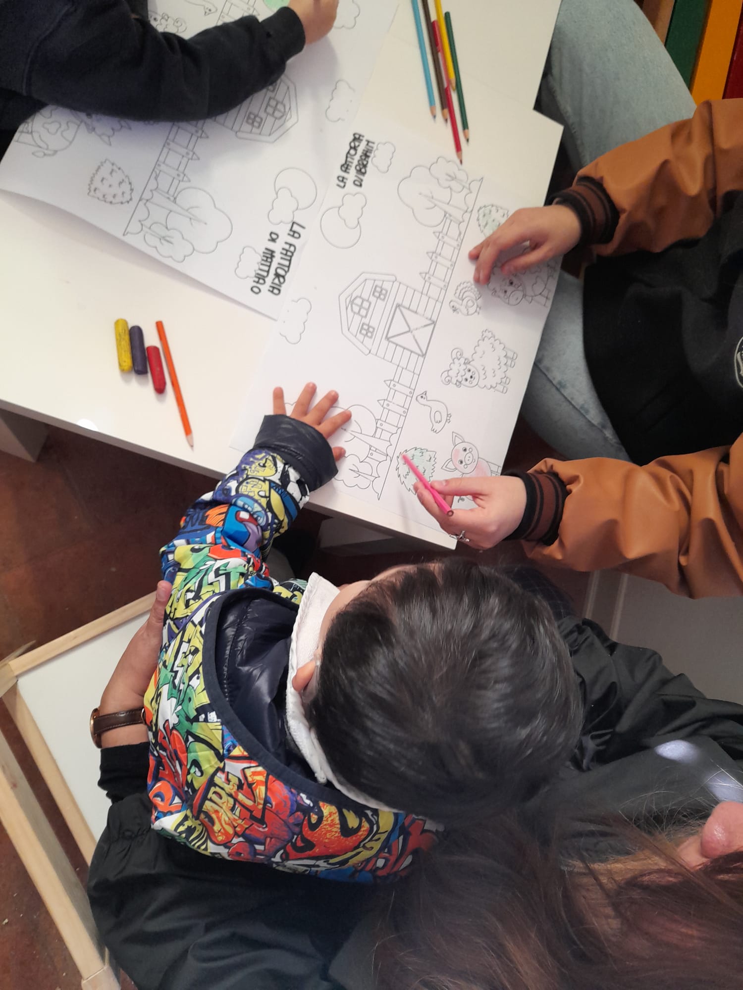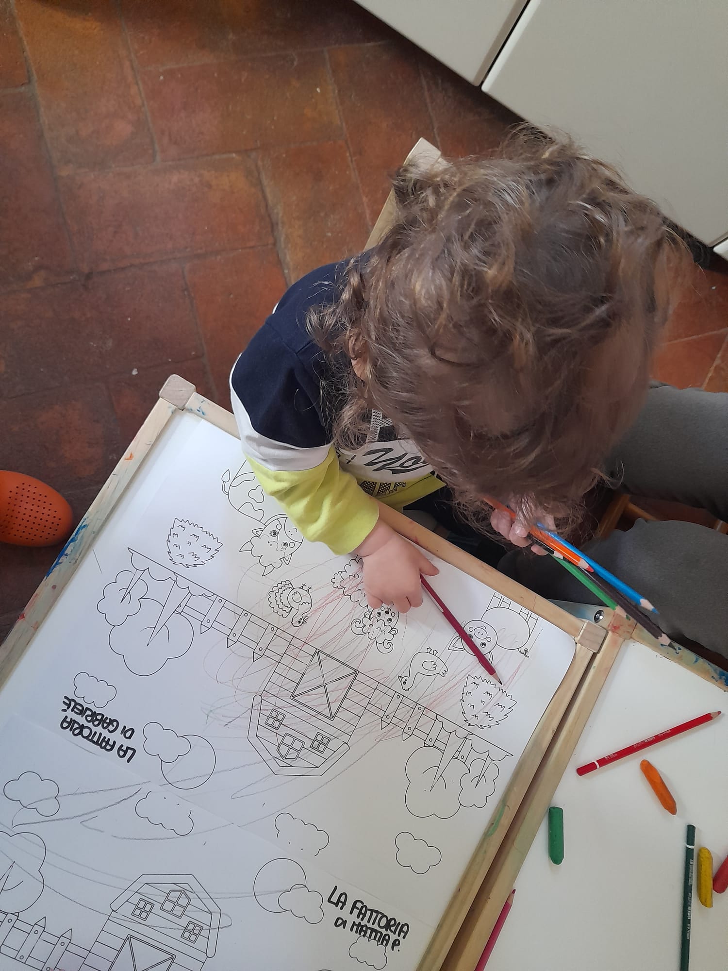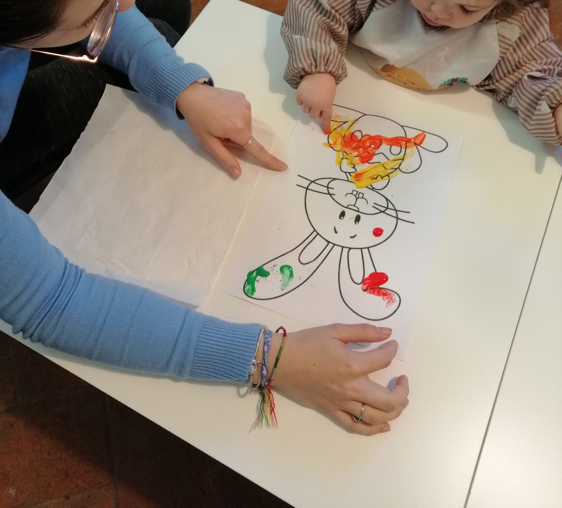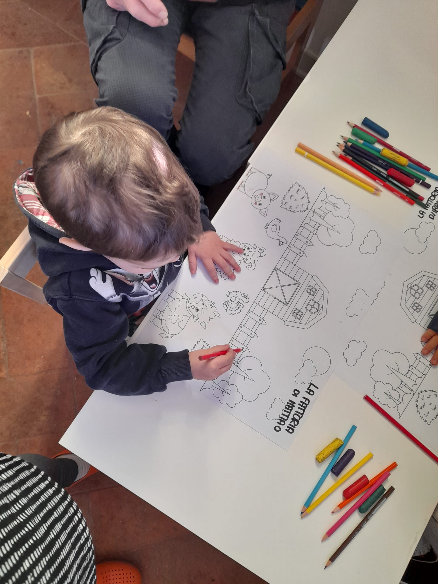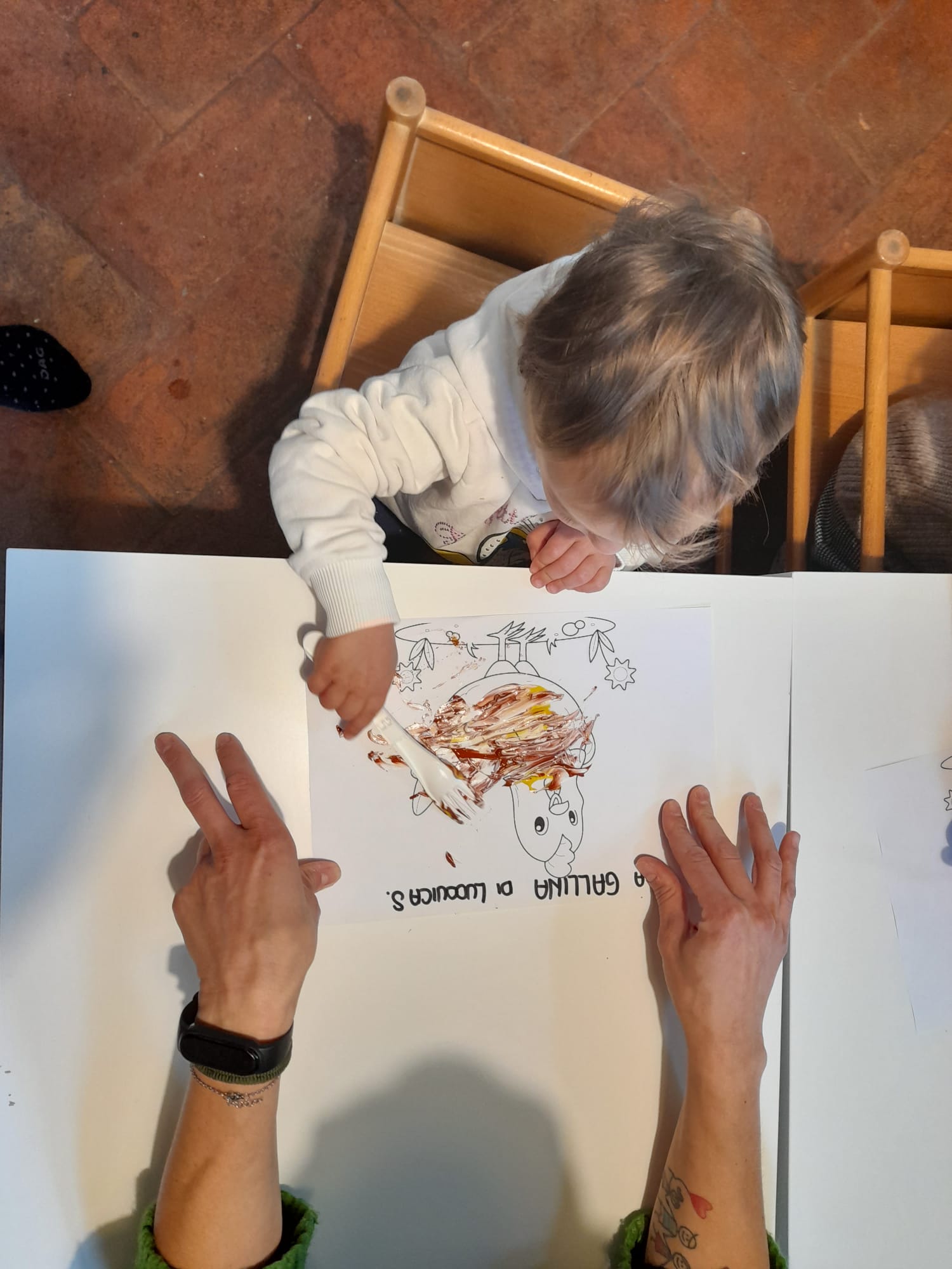 e infine per salutarci e farci gli auguri, abbiamo festeggiato il compleanno del nostro amico Mattia che ha compiuto due anni, abbiamo assaggiato la colomba e abbiamo colorato questa con i gessi colorati: