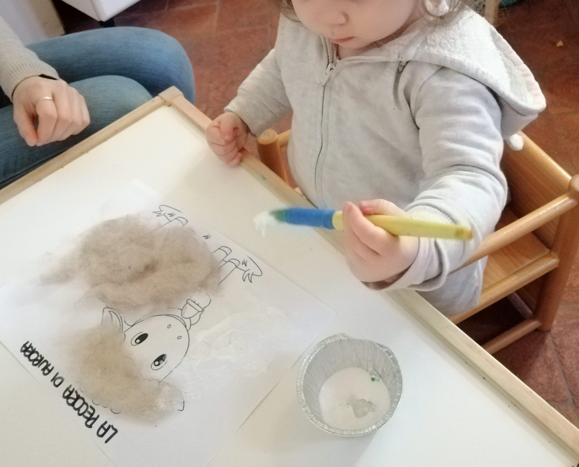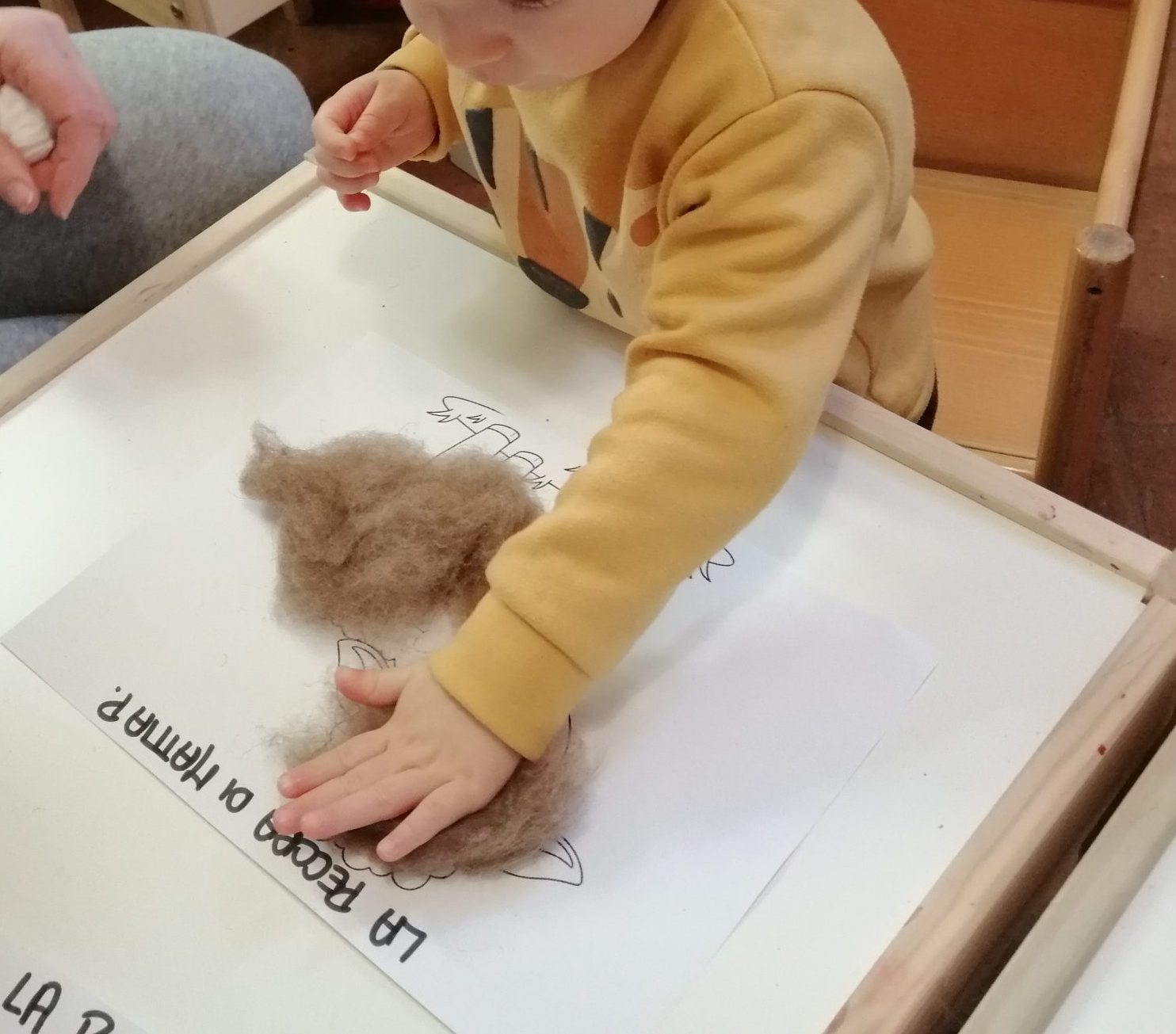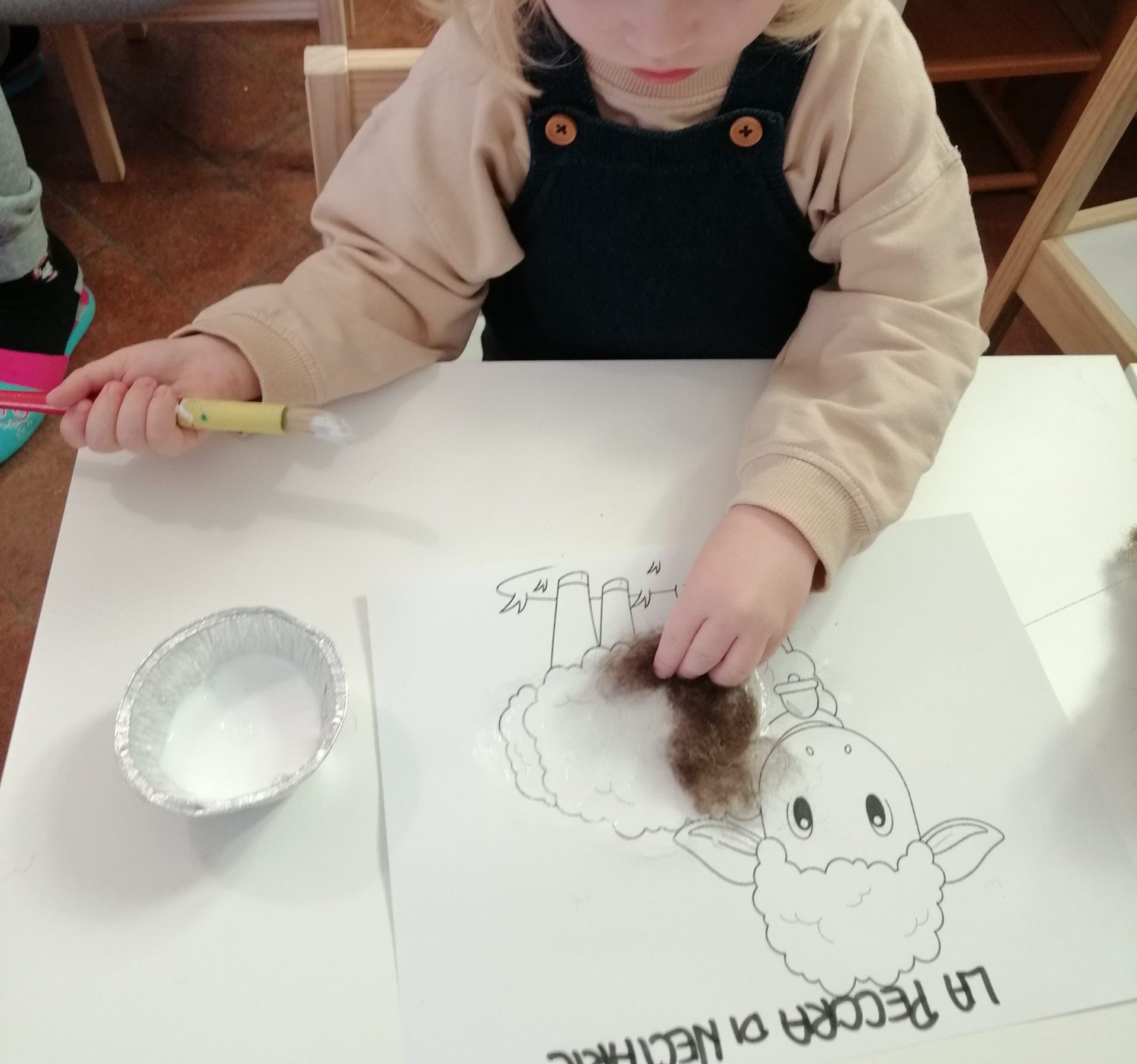 La PECORA: abbiamo toccato la lana morbida e calda, che abbiamo utilizzato per decorare la sua immagine