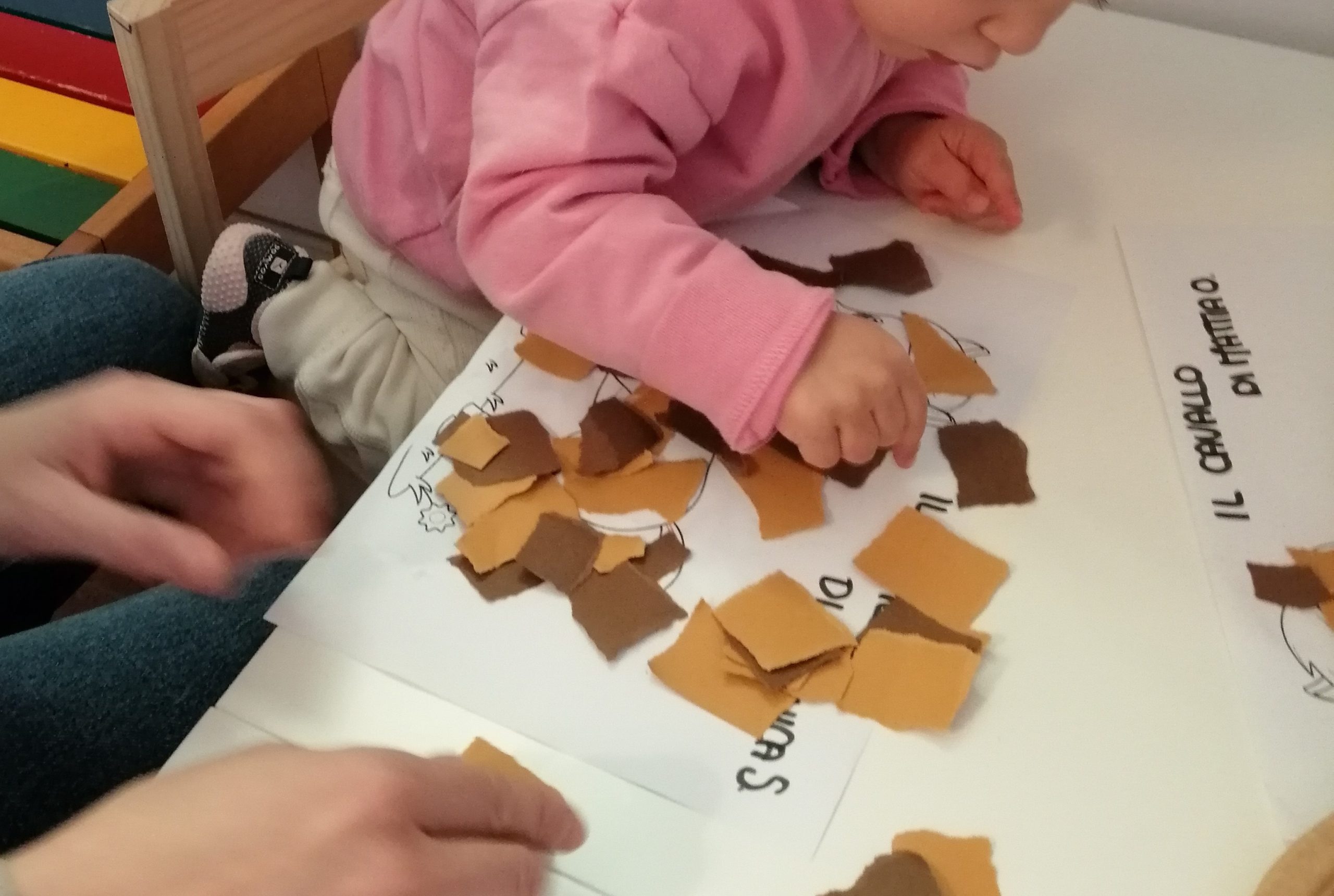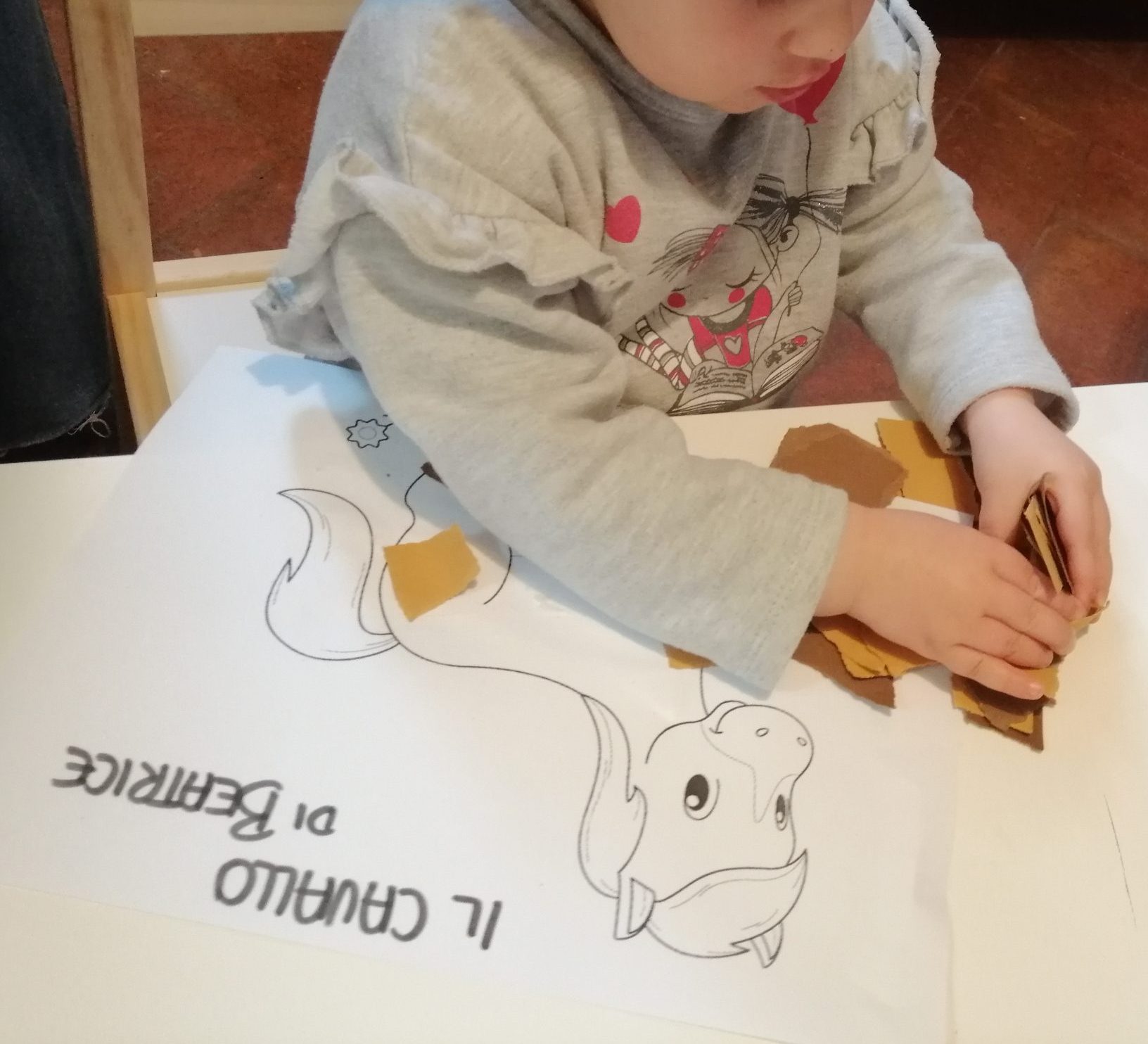 Il CAVALLO: assaggiamo le carote e decoriamo il cavallo con dei pezzetti di carta marrone e la vinavil