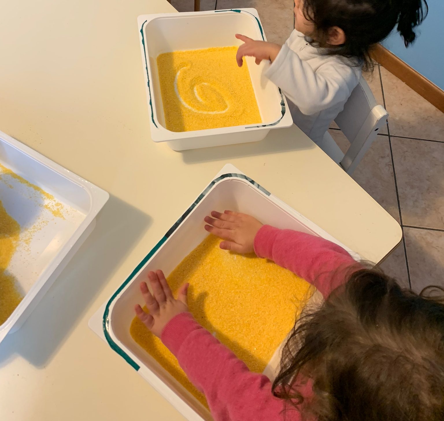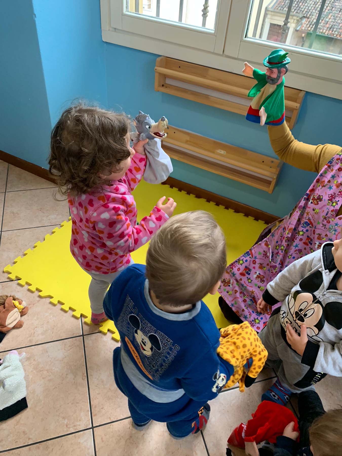 Con marionette, pongo, travasi e gioco libero ci siamo ritrovati, e con pennarelli, tempere e pastelli abbiamo fatto disegni colorati.