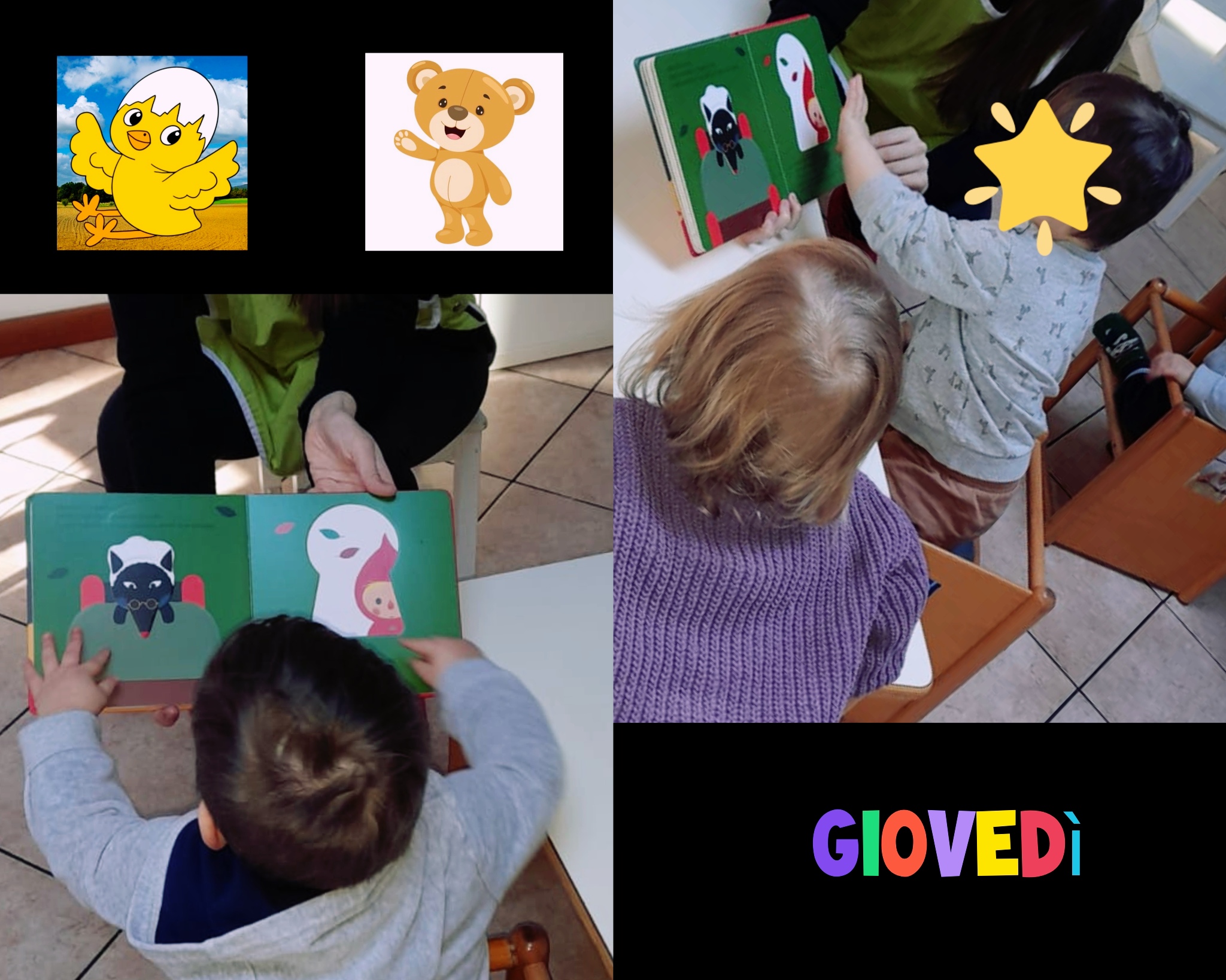 Gruppo orsetti e pulcini attività di lettura: oggi conosciamo la storia di cappuccetto rosso, guardiamo le immagini del libro e siamo molto incuriositi!