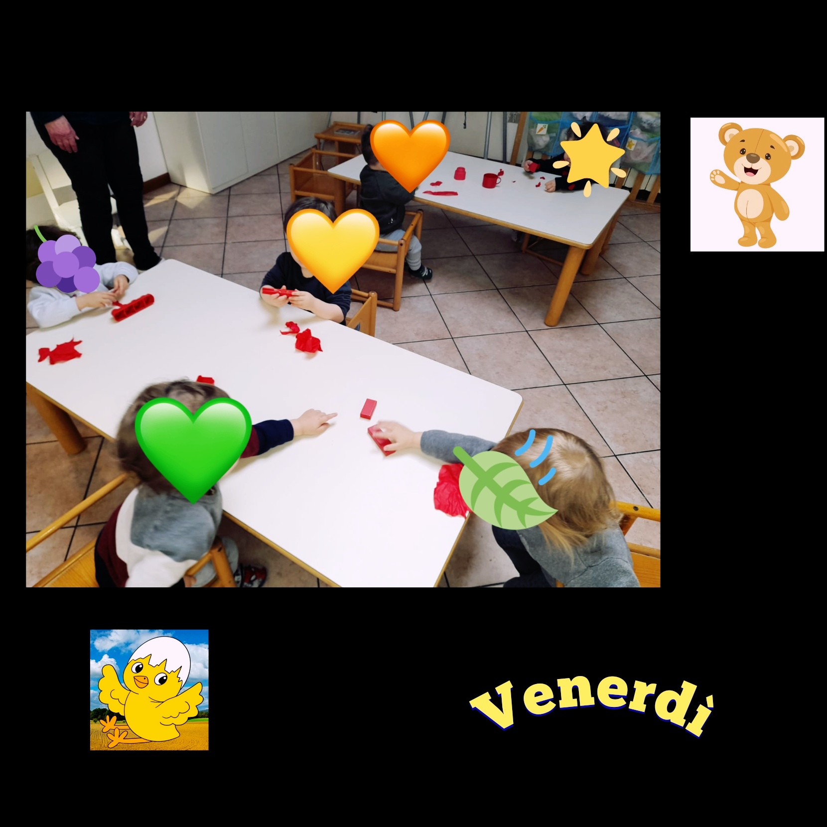Gruppo orsetti e pulcini attività di riconoscimento: oggi scopriamo il colore rosso usiamo la carta velina e poi riconosciamo e uniamo tutti gli oggetti rossi insieme