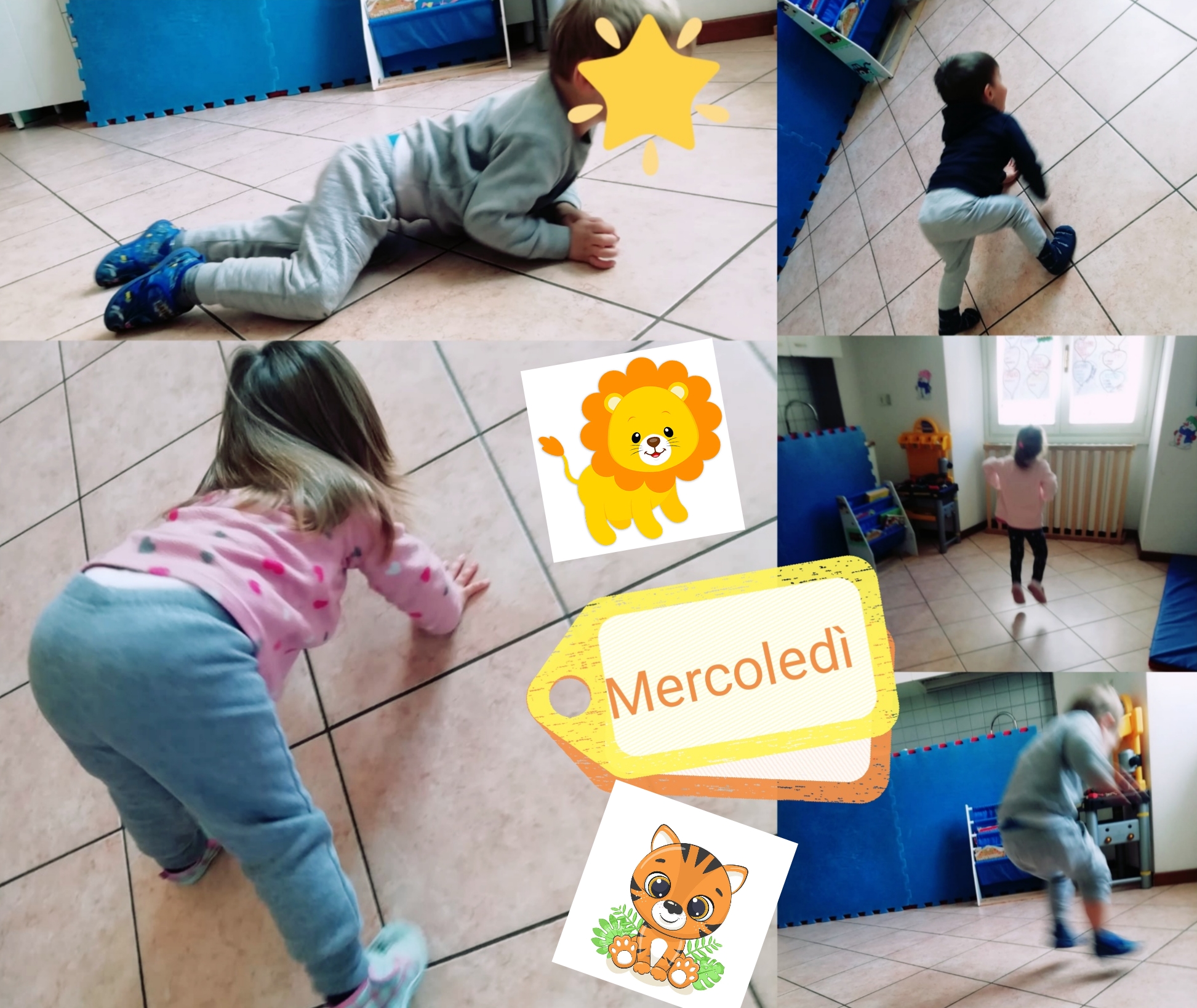Gruppo leoncini e tigrotti attività motoria: oggi sperimentiamo i passi degli animali: il canguro, l’orso, la rana e il serpente. I bambini stanno attenti a riprodurre i movimenti di questi animali muovendosi nello spazio in base all’animale suggerito.