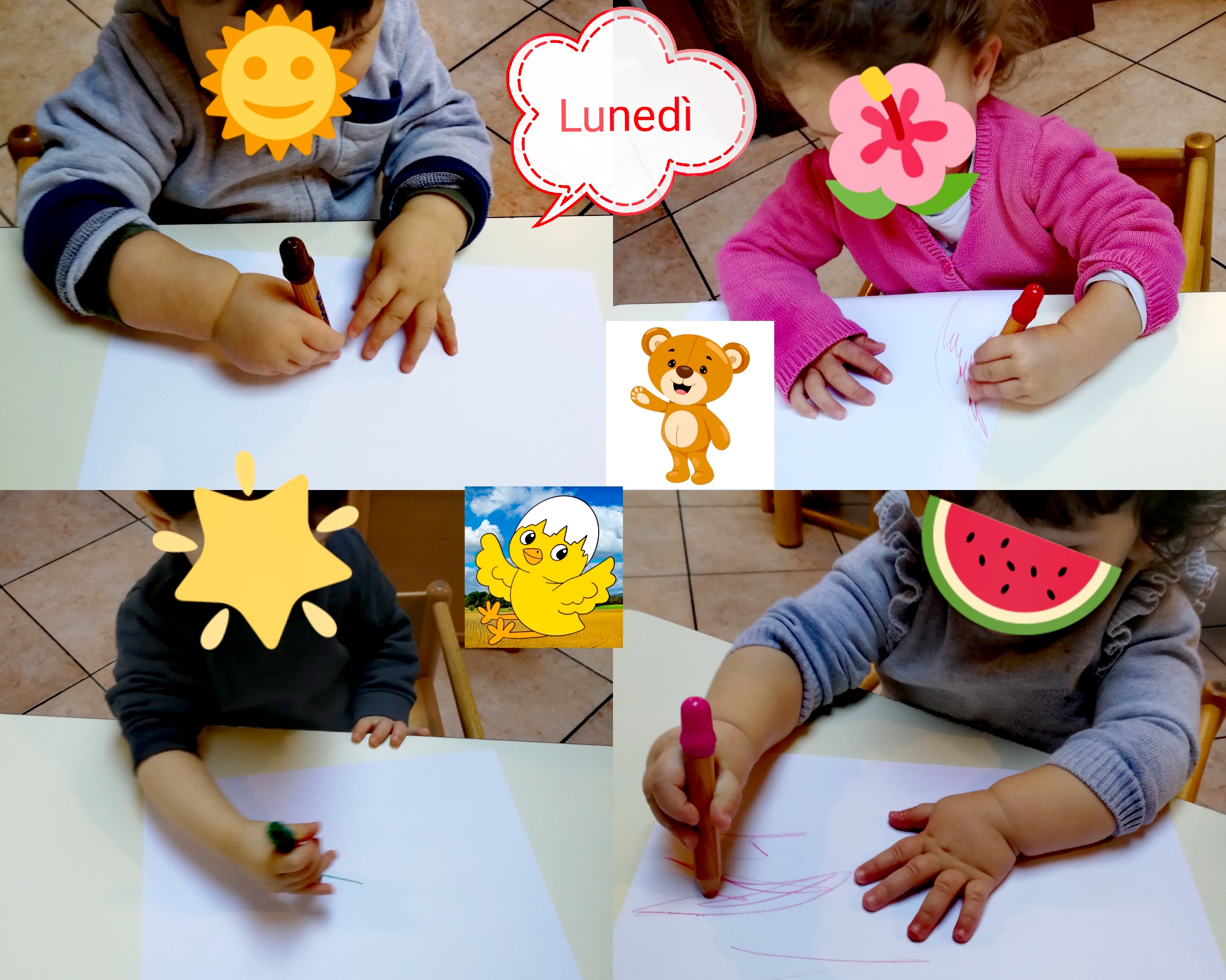 Gruppo orsetti e pulcini attività espressiva: I bambini esprimono liberamente la loro creatività disegnando con i pastelli