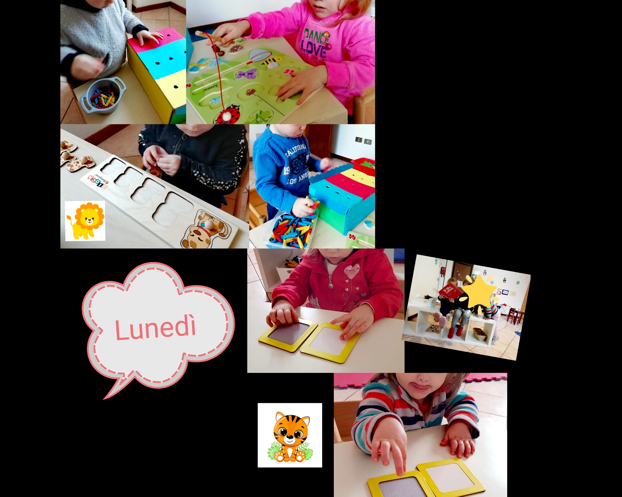 Gruppo leoncini attività strutturata: Ciascun bimbo si dedica ad un’attività (incastri, associazione colore) stimolando e allenando la logica e la motricità fine.