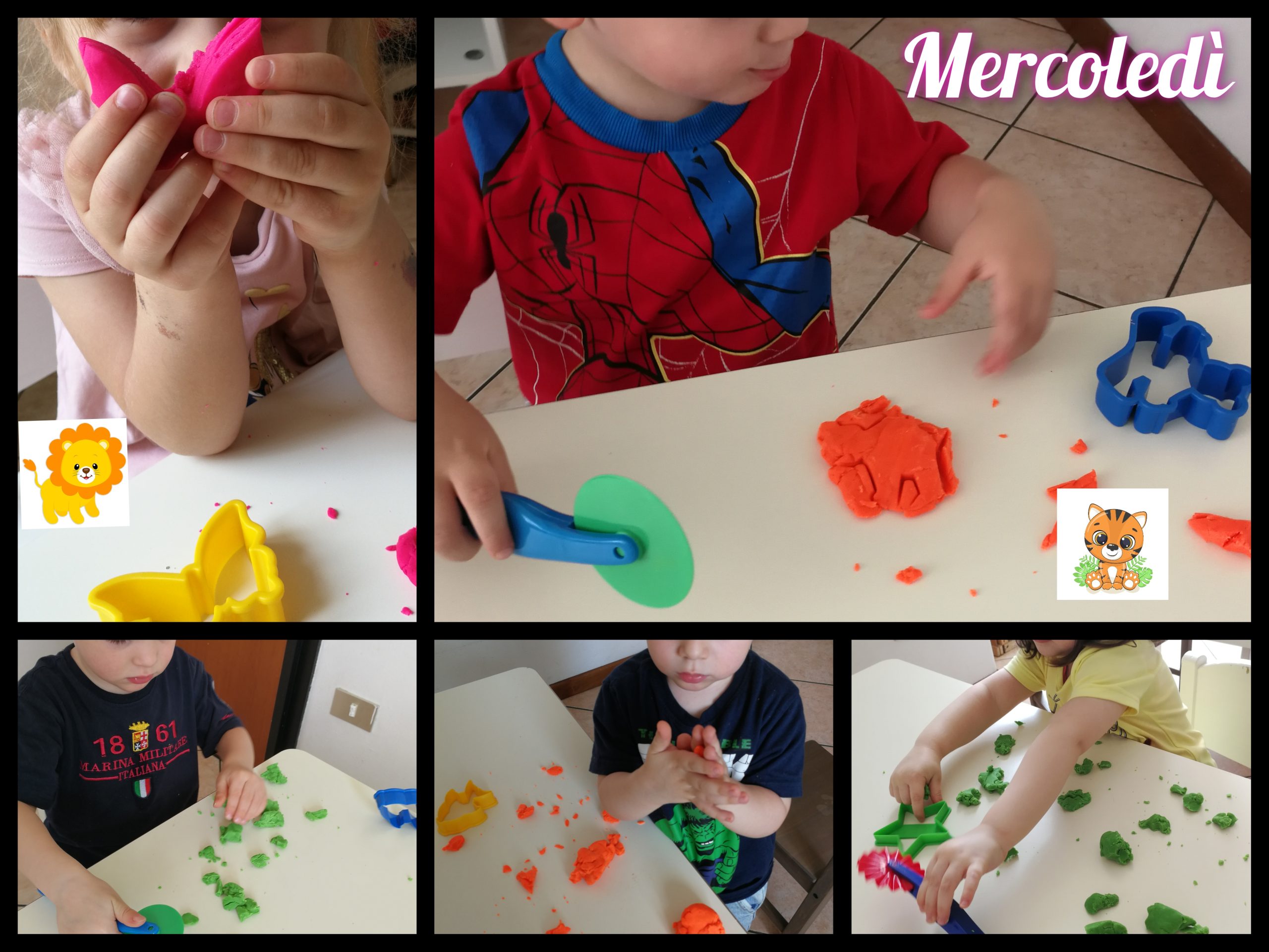 Gruppo leoncini e tigrotti attività manipolazione: oggi ci dedichiamo all’attività del pongo, lo manipoliamo, gli diamo diverse forme con le formine e gli utensili