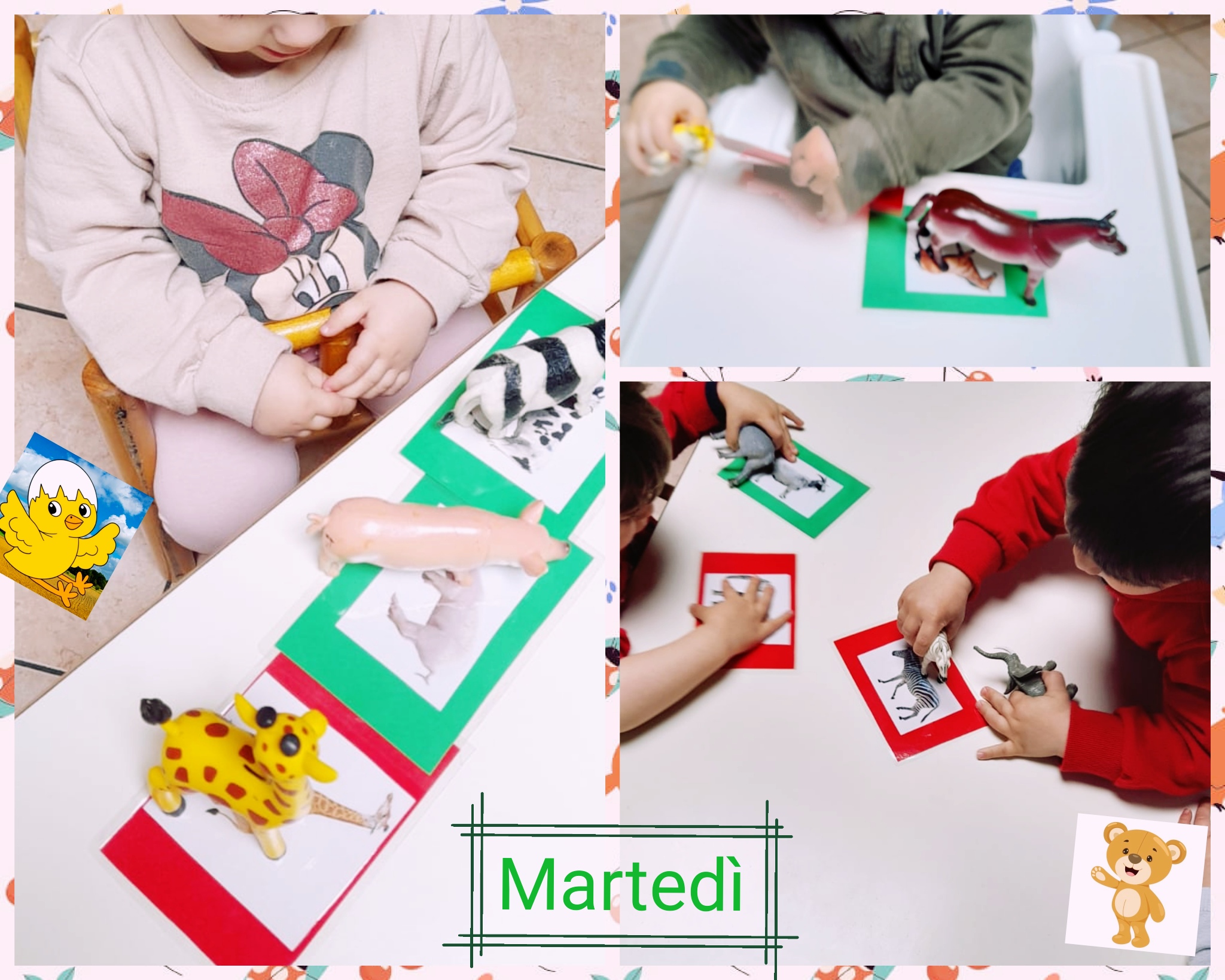 Gruppo orsetti e pulcini attività classificazione: oggi ci alleniamo con la classificazione degli animali e associamo ogni animale alla sua tessera.