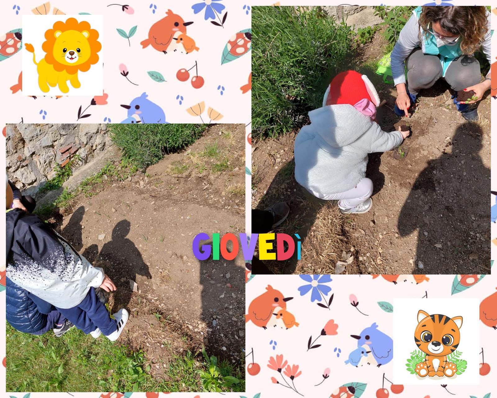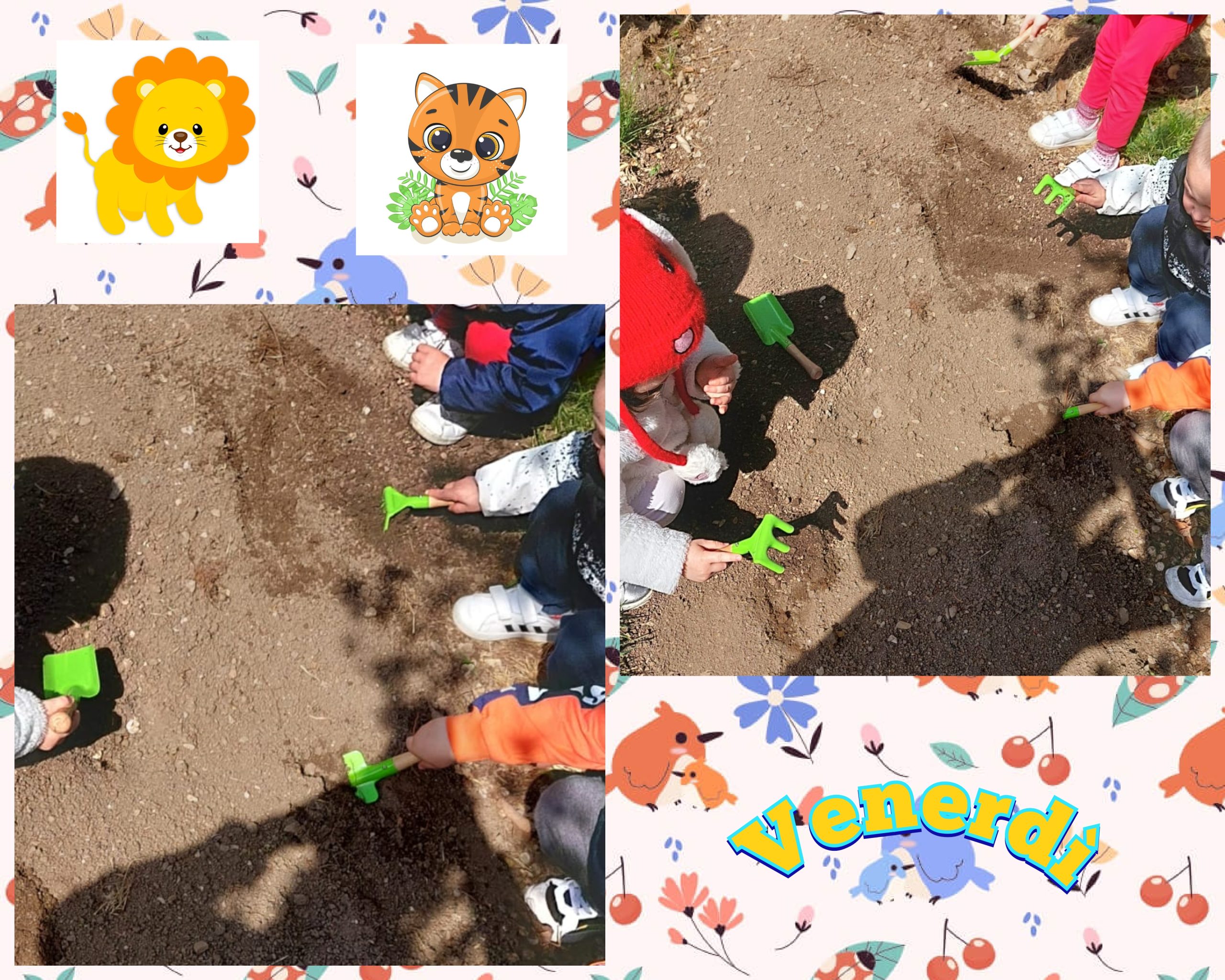 Gruppo leoncini e tigrotti attività giardinaggio: oggi trapiantiamo le nostre piantine, con le palette scaviamo il terreno. Che bello!