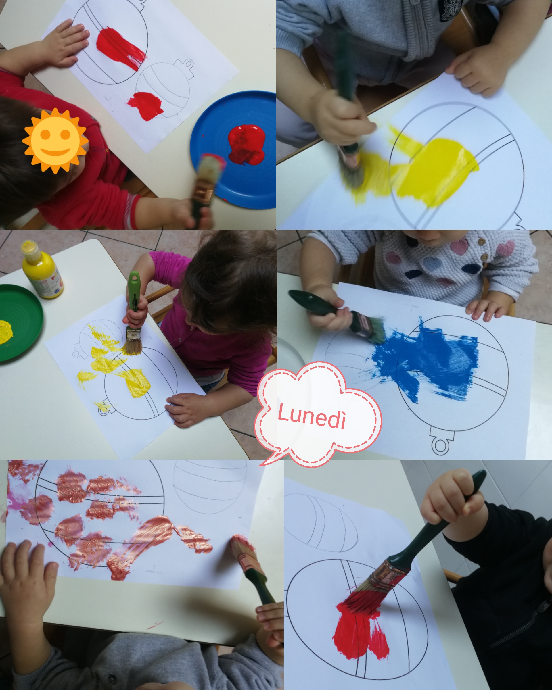 Gruppo orsetti e pulcini attività espressiva: coloriamo con le tempere le palline dì natale e decoriamo la nostra stanza