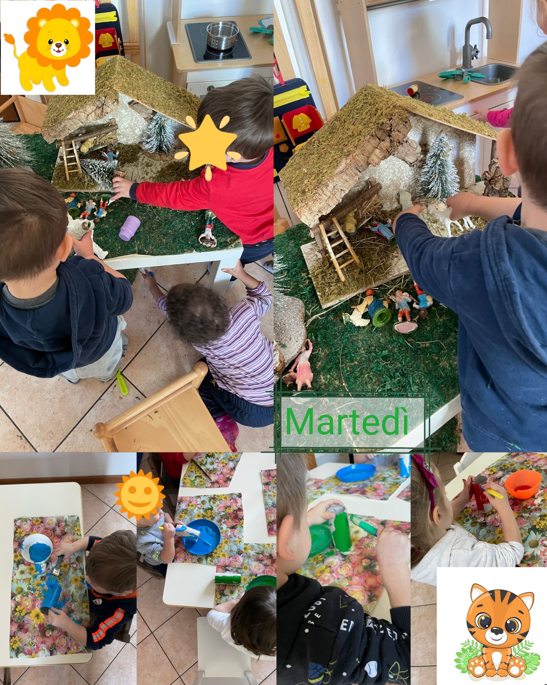 Gruppo leoncini e tigrotti attività espressiva: finiamo di colorare i rotoli e facciamo tutti insieme il presepe. Che bello si sta per avvicinare natale