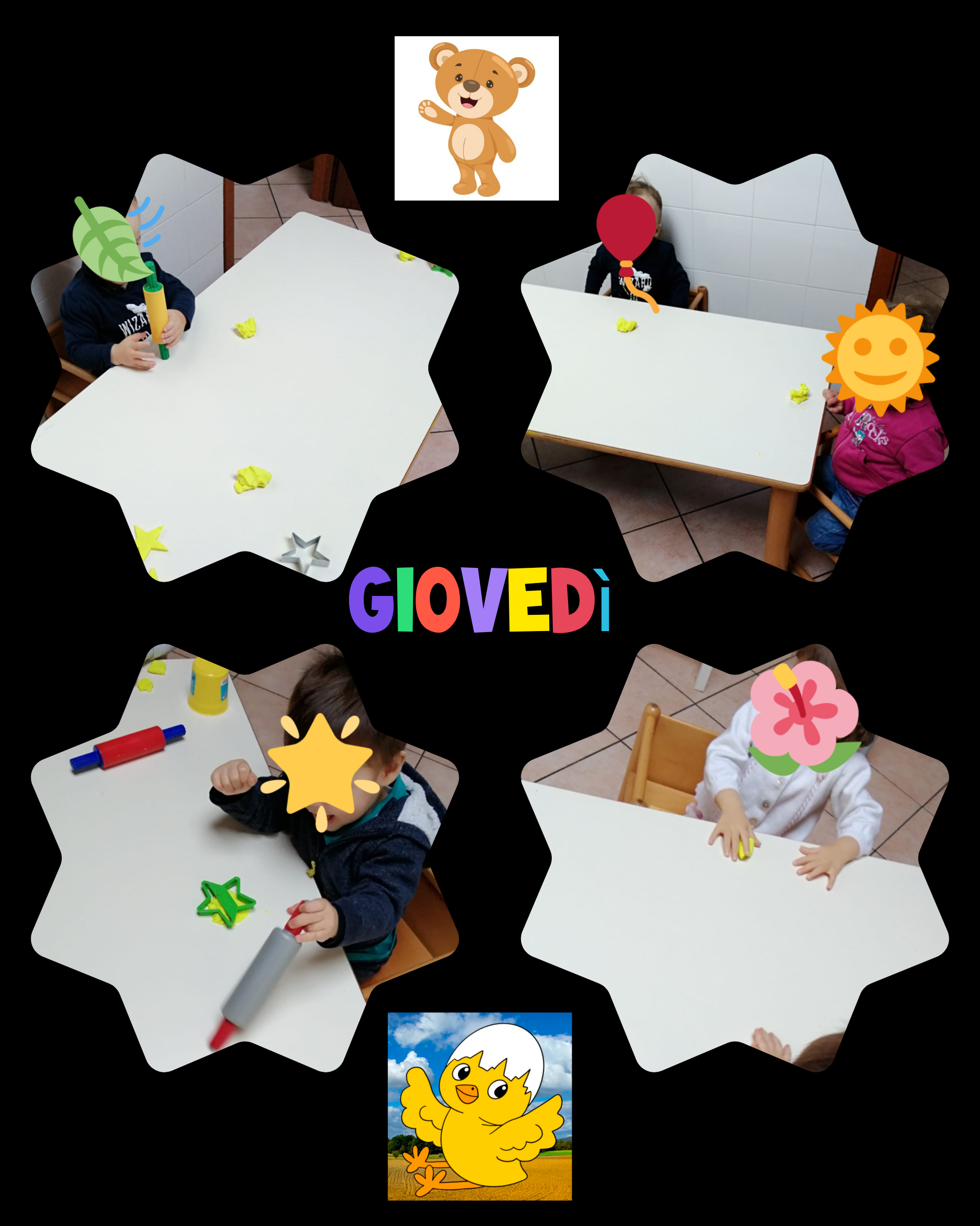 Gruppo orsetti e pulcini attività manipolativa: oggi con l’utilizzo del pongo giallo e delle formine ci divertiamo a creare tante stelline