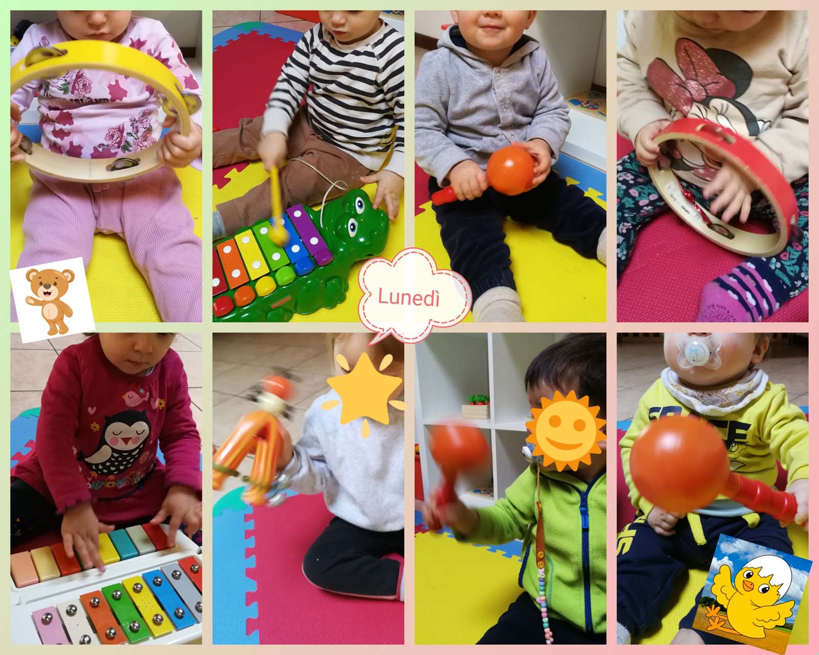 Gruppo orsetti e pulcini attività musicale: oggi ci divertiamo con gli strumenti e distinguiamo il suono piano e forte