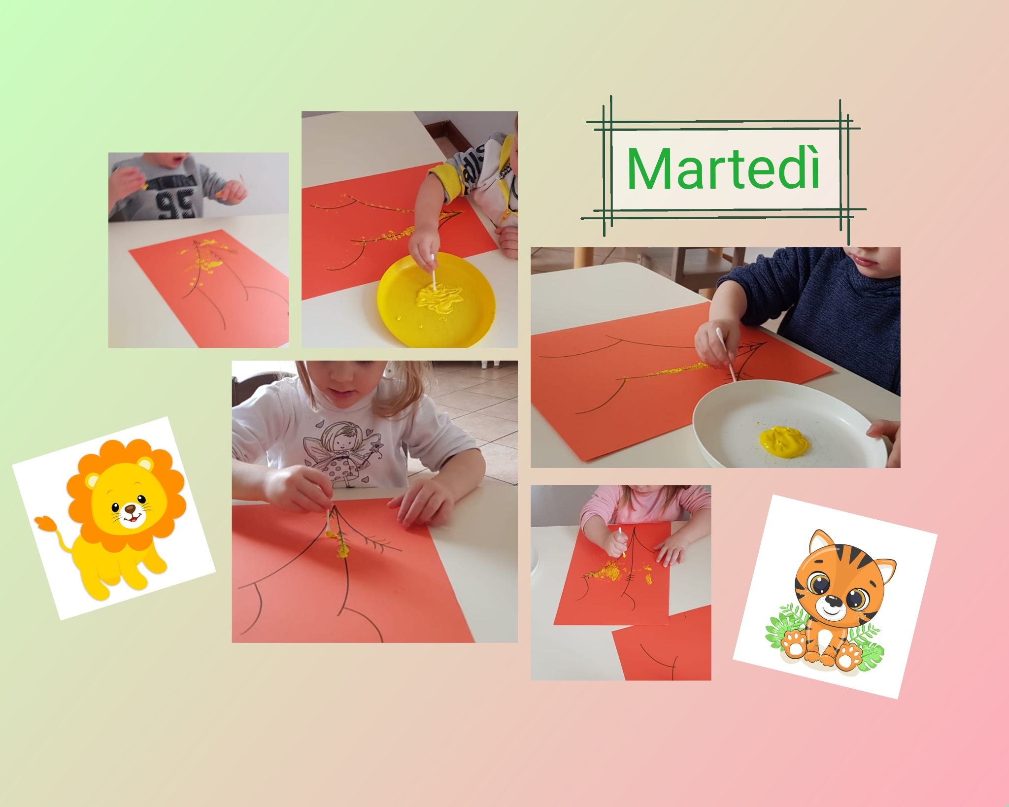 Gruppo leoncini e tigrotti attività espressiva: oggi prepariamo la mimosa, con la tempera gialla decoriamo la mimosa per la festa della donna