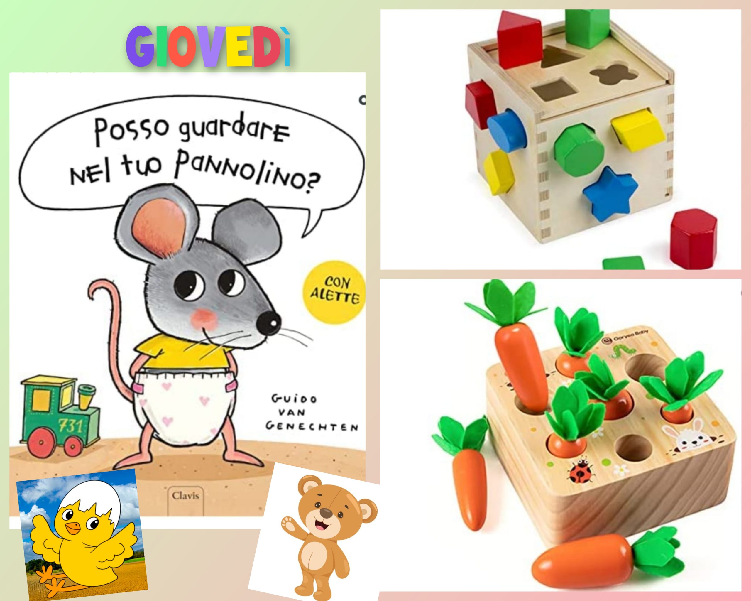 Gruppo orsetti e pulcini attività di lettura e incastri: oggi conosciamo un nuovo amico che si chiama Sebastiano Benvenuto!!! Poi leggiamo le nostre storie preferite e poi ci impegniamo con gli incastri, con l’aiuto delle nostre manine inseriamo le “carote” e le formine negli appositi buchi e spazi, allenando la nostra motricità fine